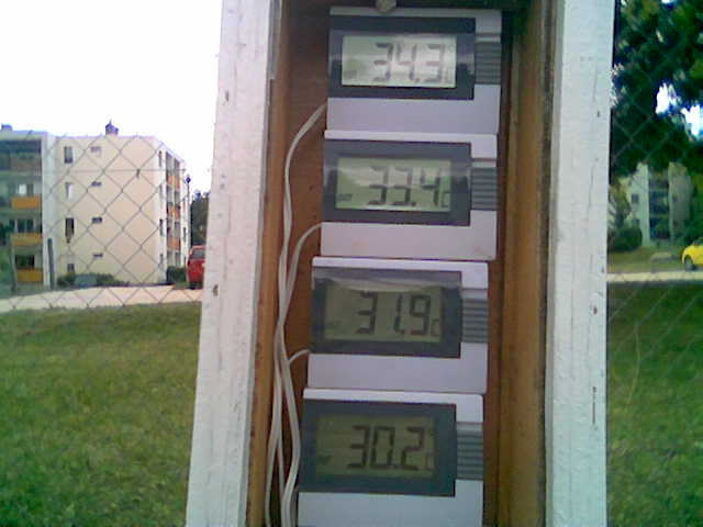 A talajmenti legalacsonyabb hőmérsékletet az úgy nevezett kisugárzási hőmérsékletet egy fajta minimum hőmérővel mérjük. Ezt a műszert radiációs minimumhőmérőnek nevezzük, amit talaj felett 5cm-es magasságban kell elhelyezni. Az elhelyezésnél nagyon fontos szempont, hogy a műszer sík és nyílt területen legyen valamint csupasz legyen. A hőmérőt egy fa villára kell helyezni és itt kell nagyon ügyelni a pontos 5cm-es magasságra, ugyanis ha ennél magasabbra vagy alacsonyabbra helyezzük akkor már jelentősebb hőmérsékleti különbségek kialkulása is előfordulhat! Ezt a hőmérőt az esti (18:45-ös) észlelésen kell kitenni és a reggeli (06:45-ös) méréskor kell leolvasni. Az így megkapott hőmérsékleti érték az esti és a másnap reggeli mérés között beállt hőmérséklet a radiációs minimum hőmérséklet. A hőmérőt este számlapjával lefelé fordítjuk, ezáltal elkerüljük, hogy lerakódjon rá a zúzmara vagy dér és így zavartalanul le tudjuk olvasni a hőmérsékletet. A nappalra kint hagyott hőmérő az erős napsugárzás hatására károsodhat! |